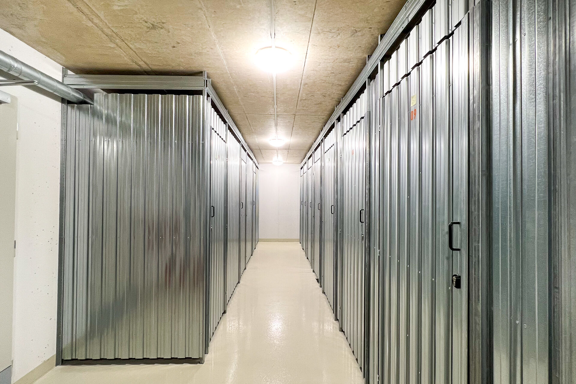 K bytu náleží parkovací stání v garáži a sklepní kóje.